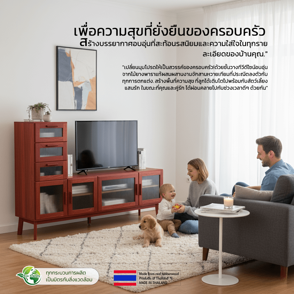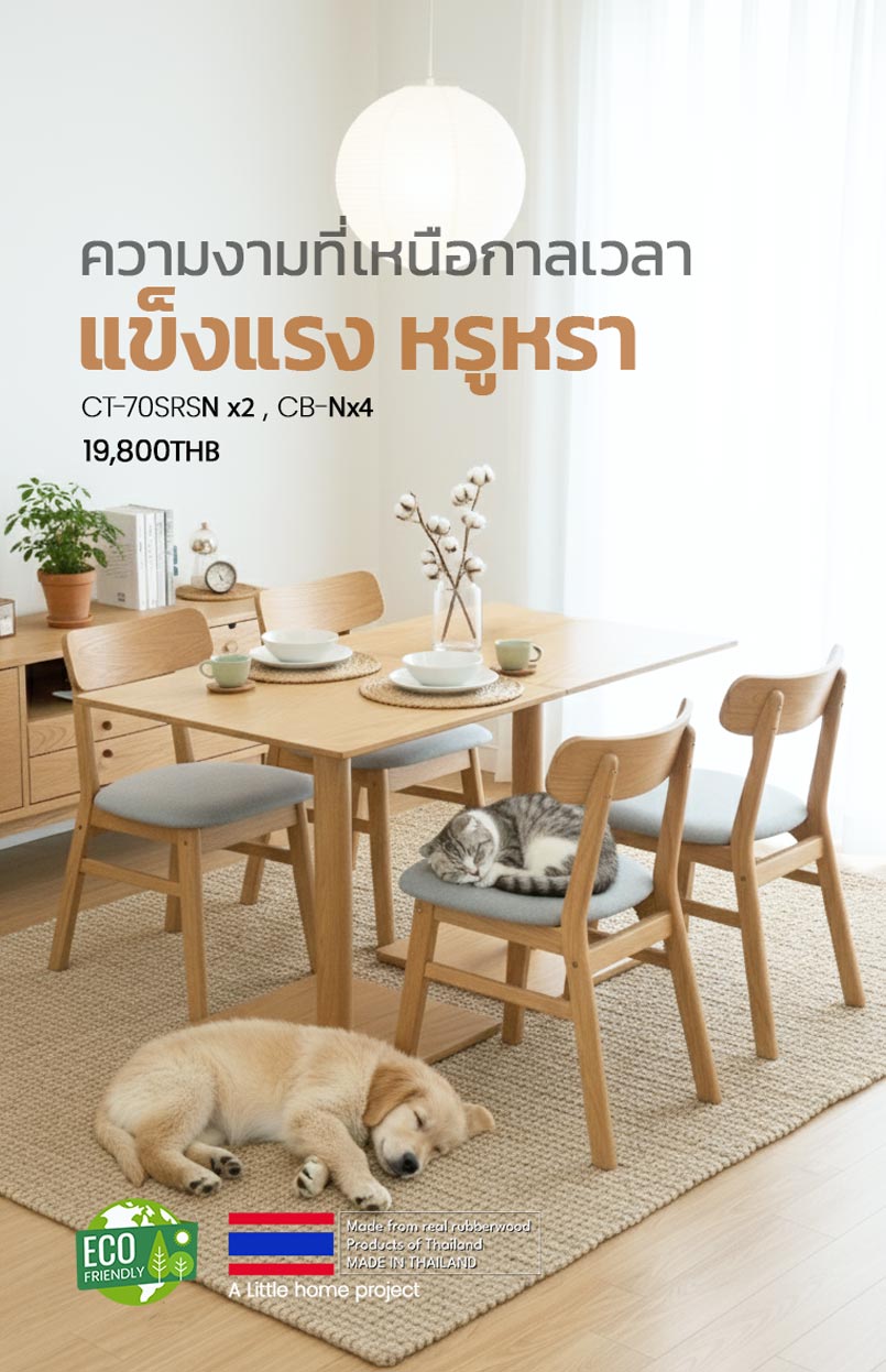 เราใช้วัสดุระดับพรีเมียม ใช้ไม้ยางพาราเนื้อแข็ง ช่วยให้มั่นใจได้ถึงความทนทาน อายุการใช้งานยาวนาน ความสวยงามยังคงรูปลักษณ์ที่น่าดึงดูดใจเมื่อเวลาผ่านไปนานหลายปี